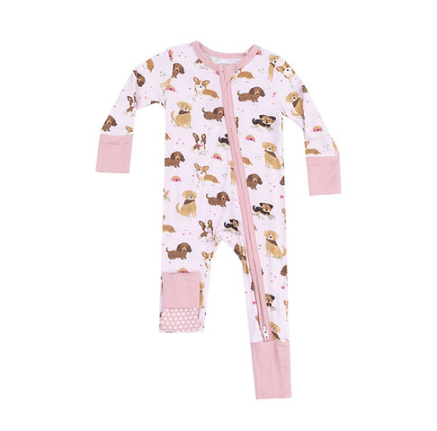BAMBOO ZIP FOOTIE || PINK GHOSTS