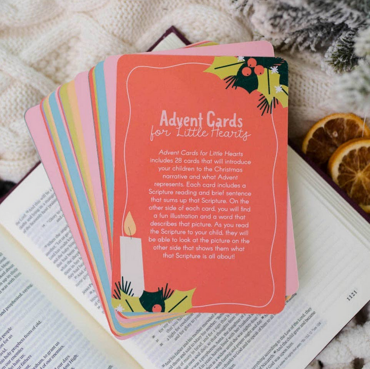 Introduce your kids to the nativity story this holiday season with Advent Cards for Little Hearts. Each card has a cheerful grap...