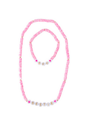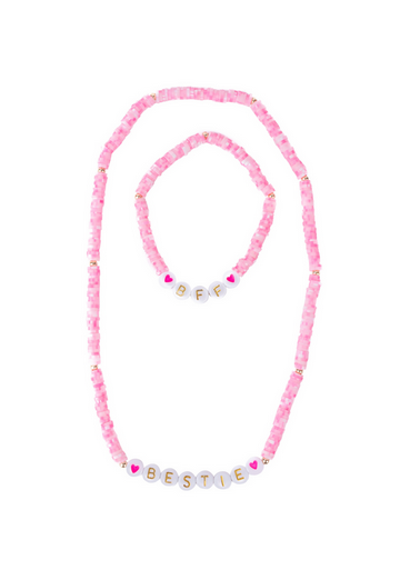 Celebrate friendship in style with the Bestie Necklace & Bracelet Set! This adorable set features pink rubbery beads for a s...