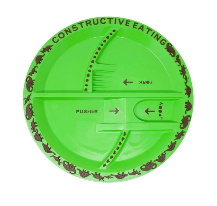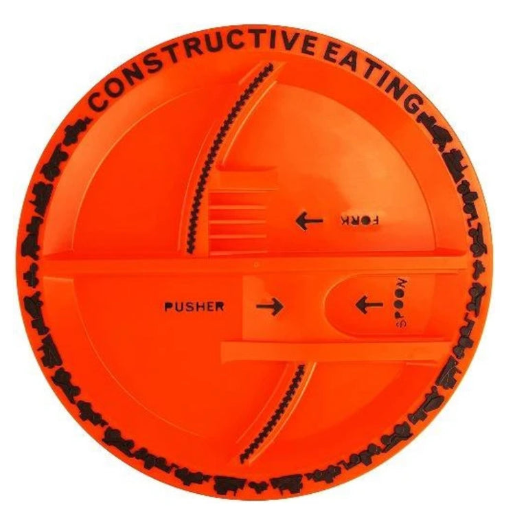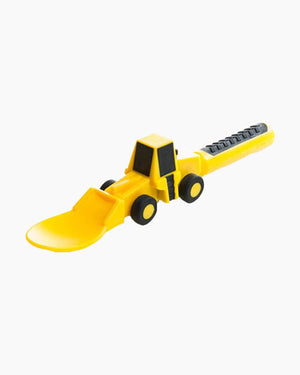 Constructive Eating Utensils make mealtime fun for even fussy eaters! Including bulldozer pusher, forklift fork and front-loader...