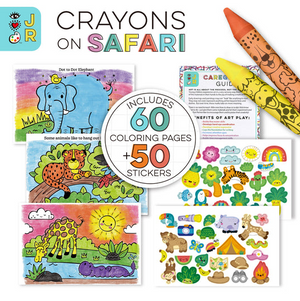 Fun safari truck-shaped box holds 10 crayon characters including a lion, zebra, elephant and more! Color and play with the 60-pa...