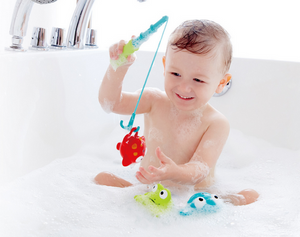 - This bath toy develops hand-eye coordination and fine motor skills through play.