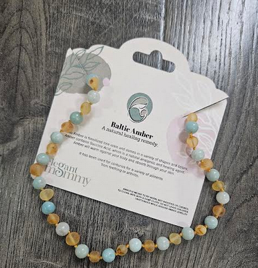 Baltic Amber Teething Necklace – Honey Amber & Amazonite, 12.5”