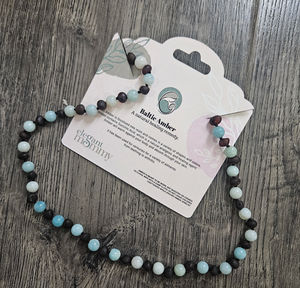 Baltic Amber Teething Necklace – Molasses Amber & Amazonite, 12.5”