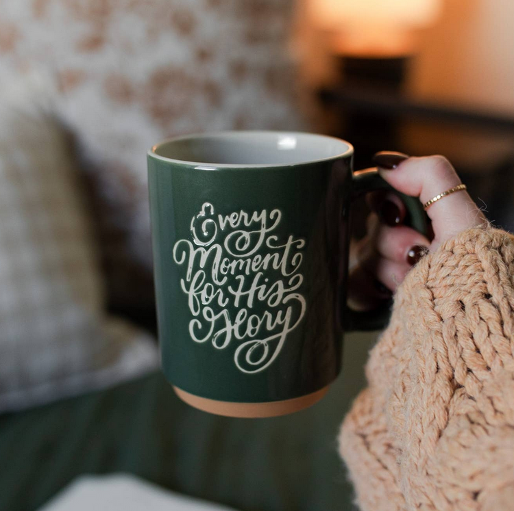Enjoy a warm cup of coffee with our Every Moment for His Glory Leaf Green Mug!