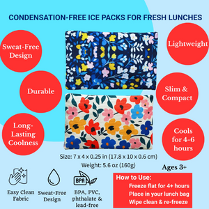 Yumbox Soft Gel Ice Packs with Insulated Fabric Sleeves – Floral Prints - 2 Pack