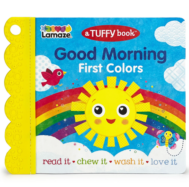 Tough enough to be a teether for toddlers, little ones can start learning about colors or use as a soothing teether with this chewable book. Say good morning to the green frogs and white ducks in the pond. Take a walk through the farm and point out the red barn or the blue tractor. Hop in a yellow taxi and tour the city for all the colorful sights. Go for a picnic in the park with the tan puppy and play fetch with the purple ball. There are fun activities and different colors to explore on every page! These hand-washable and safety-sewn pages are safe for toddlers to chew on and feel just like paper. When you reach the end of the story, you can wash it and read all over again!