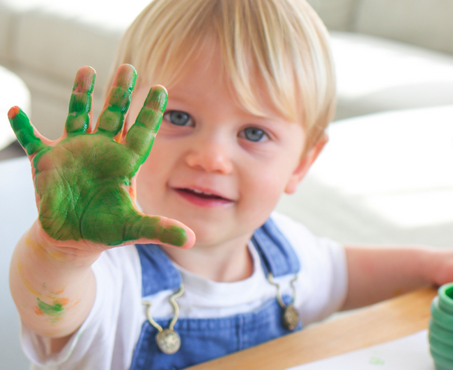 Easy wash from little hands: Colourful mess, no stress – Honeysticks Finger Paint washes off hands and non-porous surfaces easily with natural soap and warm water.