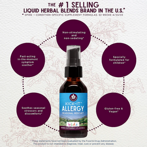 Seasonal stress and irritation can be especially challenging for kids. Kick-It Allergy Seasonal Rescue For Kids supports your child's immune, respiratory, and lymphatic systems to help soothe seasonal tension and discomfort. Use in-the-moment or for extended seasonal stress.