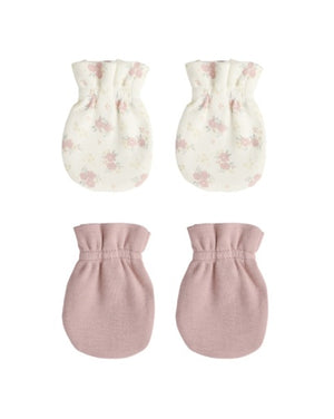 NO SCRATCH MITTENS SET MAUVE, FLOWER FIELD MAUVE-IVORY