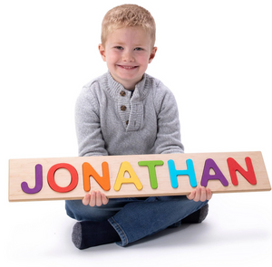 There's nothing quite like the feeling children get when they see their own name carved out of high quality wood, painted with stunning colors, and displayed for all to see. It's the smile, the twinkle in the eyes – Kids feel special, unique, noticed, important, and best of all, LOVED. - And with this puzzle, it doesn't matter what their name is. Each and every name puzzle is custom created!