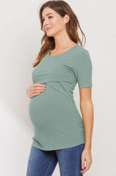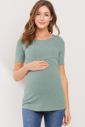 *Ribbed Double Layered Bust Nursing Top - Mint