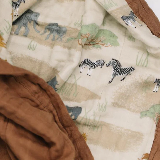 What could be better than our original airy and oh-so-soft muslin fabric? Times it by four! The soft and supple muslin fabric made from bamboo is now layered into this four-layer muslin quilt. Perfect for those muslin-lovers that want a little something extra. Available in a variety of our custom-made prints, detailed with a stitched quilted design and then bound with a one-inch border; this blanket is sure to become a favorite snuggle companion everywhere you go.