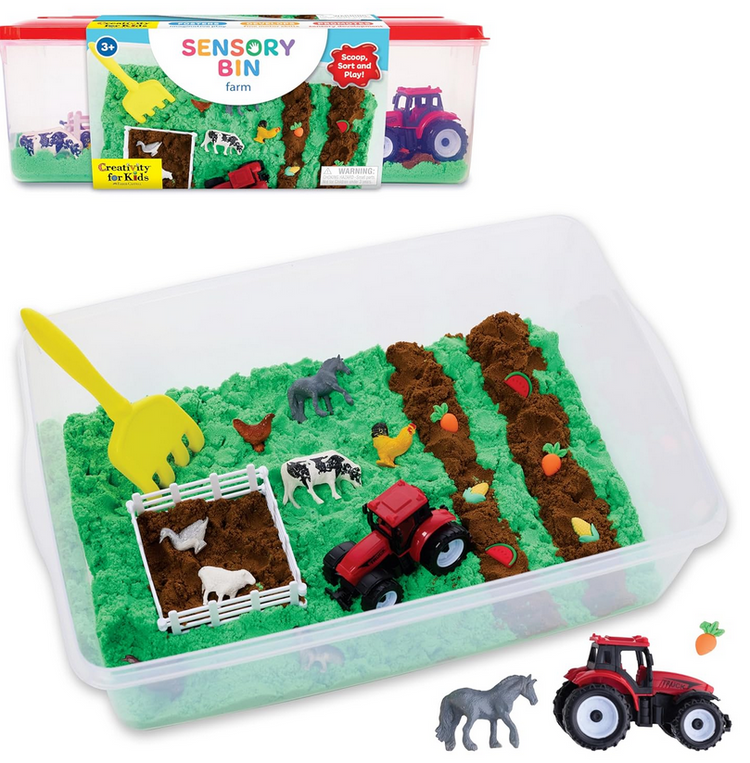FARM FRESH FUN: Welcome to the barnyard! The Farm Sensory Bin from Creativity for Kids is packed with soft, squishy play sand a...