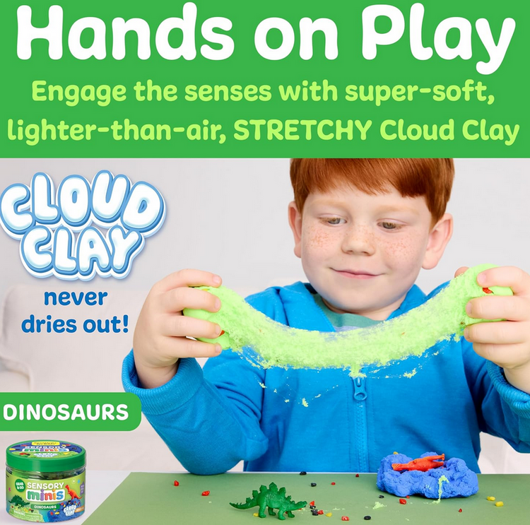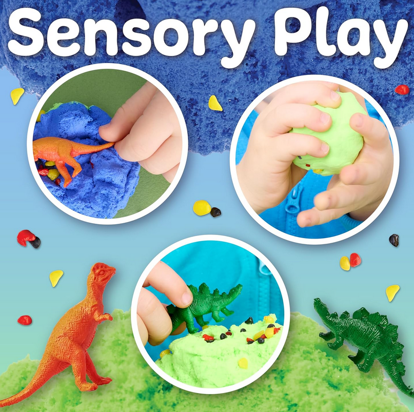 SOFT CLAY, SENSORY PLAY: The boron-free cloud clay is soft, fluffy, and easy to mold—making it perfect for little hands. Kids can dig, roll, shape, and squish while strengthening fine motor skills and exploring sensory regulation through calming play. A great tool for learning through play, this sensory kit offers screen-free fun for curious kids and makes an amazing gift for 3 year old boys