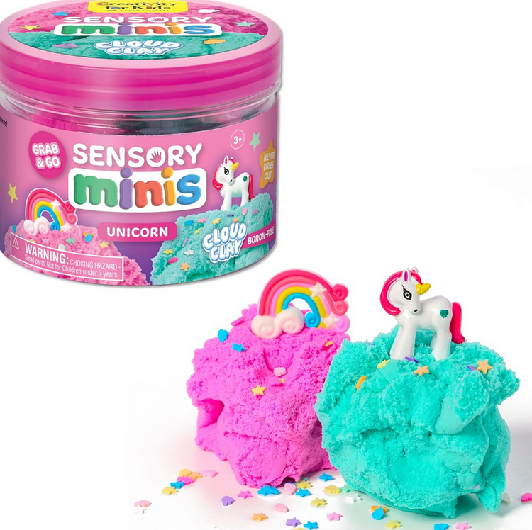 SQUISH, SCOOP & EXPLORE: Dive into magical sensory fun with the Unicorn Sensory Minis—a grab-and-go sensory kit filled with cloud clay and unicorn-themed accessories. Stretch, squish, and mold the soft, fluffy texture to engage little hands. It is a dreamy hands-on experience that keeps kids busy and minds inspired