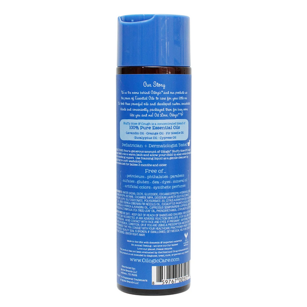 Directions: Pour a generous amount of Oilogic’s Stuffy Nose & Cough Vapor Bath into a warm bath and allow your child to soak while breathing in the soothing vapors. Use foaming liquid as a gentle cleanser by applying to a soft washcloth.