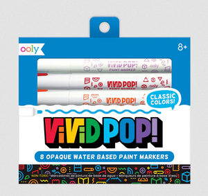 Take your painting up a notch with these Vivid Pop! paint markers. The set includes eight acrylic markers in a rainbow of bright colors. These multi surface markers are great for painting on things like rocks, wood, cardboard, and of course, paper!
