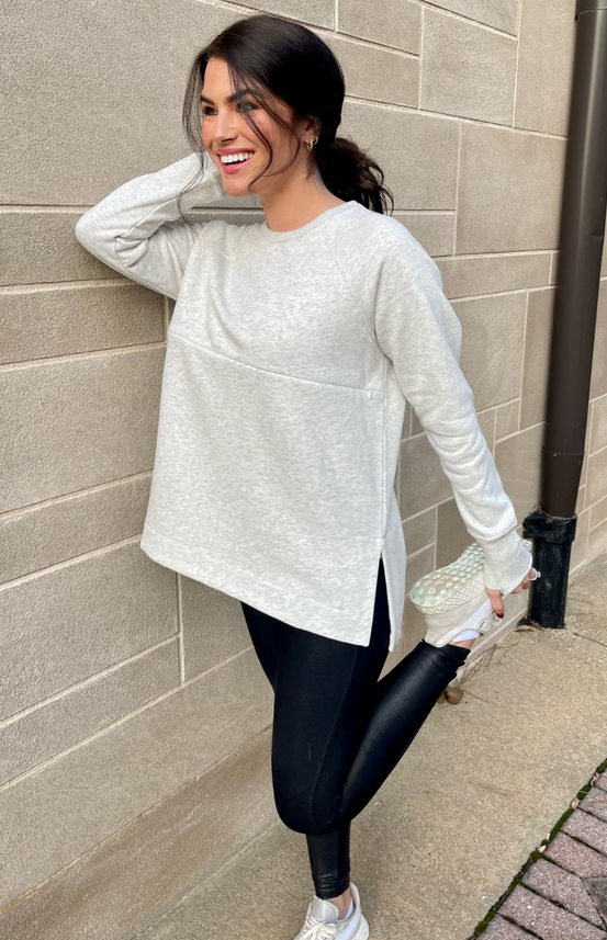 Yoga Nursing Tunic Sweatshirt- Light Heather Gray | Light Gray